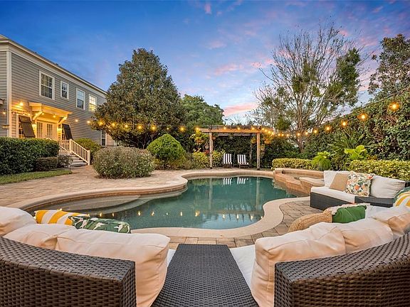 Welcome to this one-of-a-kind oasis pool home located in the heart of Baldwin Park. Nestled on the charming Baskin Mews, this property sits on a rare acre of land, providing privacy and ample outdoor entertainment space. The beautifully landscaped grounds feature a pebble-tech pool with water feature, a spacious pavered patio, great for lounging by the pool and outdoor dining. A covered cabana with an outdoor kitchen equipped with a large built-in DSC grill, hood, sink, refrigerator, wood-burning fireplace, and TV, making it the perfect spot for year-round entertaining. Attached to the cabana is a 400 sq ft Mother-in-law suite with a full bathroom, separate entrance and direct access to the pool area, ideal for guests or private office space. Inside, the main home there are wood floors throughout, an updated kitchen, which overlooks the family room and features quartz countertops, stainless steel appliances, a subway-tiled backsplash, a farmhouse sink, a large island with seating, and a custom wall of cabinetry designed for easy entertaining and storage. There are three spacious bedrooms, a downstairs office or playroom, and 2.5 bathrooms. The attached two-car garage is equipped with storage systems, providing space for vehicles, toys, and bikes. There is also an oversize/extended driveway directly behind the garage offering space for several cars, which is a huge plus. Upstairs, the primary suite offers tray ceilings, split vanities with a makeup area, a soaking tub with a separate shower, and a walk-in closet. Two additional bedrooms, an additional bathroom, and a laundry room complete the upper level. This home's location couldn't be more ideal. The property is near High Park, a lush, tree-lined park with a pond, two pavilions, a tot lot, and pool. It is also adjacent to the Lake Baldwin Running Trail and close to Lake Baldwin Dog Park, making it the perfect place for outdoor enthusiasts. Baldwin Park is a community that provides numerous parks and walking trails, with access to three pools, a fitness center, and several playgrounds. The downtown village provides plenty of dining, shopping, and entertainment options, and the home is just a short distance from Downtown Orlando and Winter Park. The community is currently zoned for Baldwin Park Elementary, Glenridge Middle, and Winter Park High School. If you love the outdoors and community living, this is the perfect place to call home.