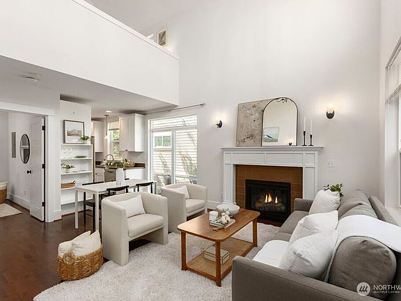 Charming Brandon Street Cottage – No HOA! Rarely available detached townhome with soaring ceilings, gas fireplace, and natural light from windows on all four sides. Main floor includes a bedroom/office and half bath. Kitchen features granite counters and stainless appliances. Upstairs, a lofted primary suite offers a full bath and walk-in closet.Enjoy radiant floor heat, fresh paint/carpet, and a private fenced side yard with patio next to a shared courtyard. Includes off-street parking and 3-Star Built Green rating.Unbeatable location—walk to Camp Long, parks, coffee, shops, South Seattle College, and library. Steps to RapidRide for a quick downtown commute. Welcome home!