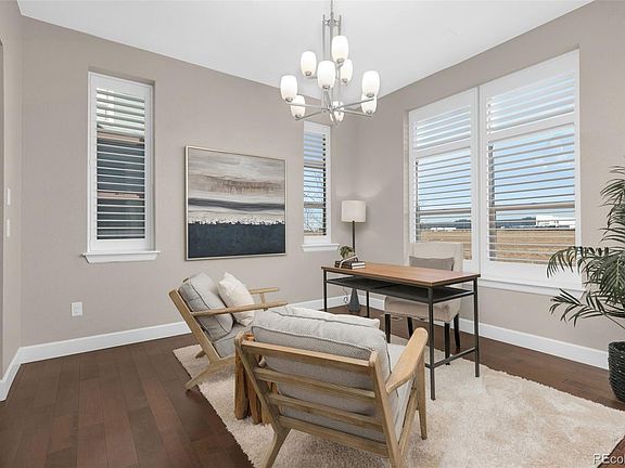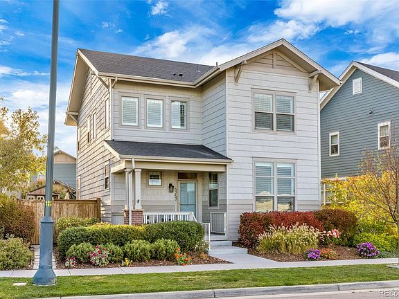 This lovely 4 bedroom Thrive home with a stunning finished custom basement and attached 2-car garage is located just blocks from Wicker Park in Denver's Central Park neighborhood! This beautifully cared for home boasts soft-close cabinetry, plantation shutters and 10’ ceilings throughout. Come in past the quaint covered front porch to the entry hall to find the dedicated home office with access to the butler's pantry with a built-in wine rack and beverage fridge. Head into the heart of the home featuring an open floor plan encompassing the kitchen, living room and dining room. The space features a gorgeous and ultra-chic stacked stone gas fireplace, providing for warmth in style. The ultra-chic kitchen with a sleek backsplash, large central quartz island, Bosch SS appliances including double wall ovens, gas cooktop, and range hood will delight your inner chef’s fancy! With an open dining space and an adjacent backyard patio, your new home provides you with multiple dining options. A low-maintenance turf yard makes lawn work a thing of the past! A built-in desk and wood live edge shelves, a mudroom with a walk-in pantry, and a powder room, all round out the first floor. Head upstairs to discover the elegant primary suite with a walk-in Closets By Design organization system custom closet. The 5-piece ensuite is showcased by a soaking tub, dual sink vanity and glass enclosed shower. Two spacious bedrooms with a connecting full bathroom, and a laundry closet with included washer and dryer completes the second level. Head down to the masterfully customized basement featuring a huge media/family room and a fabulous wet bar with stacked quartzite backsplash, floating shelves and a full fridge. A flex space sits nearby with custom built-in open pass-through shelving, perfect for an additional office, playroom or workout space! A spacious bedroom and a stylish bathroom finishes out the level. Close to an abundance of shopping and restaurants, this home has it all!