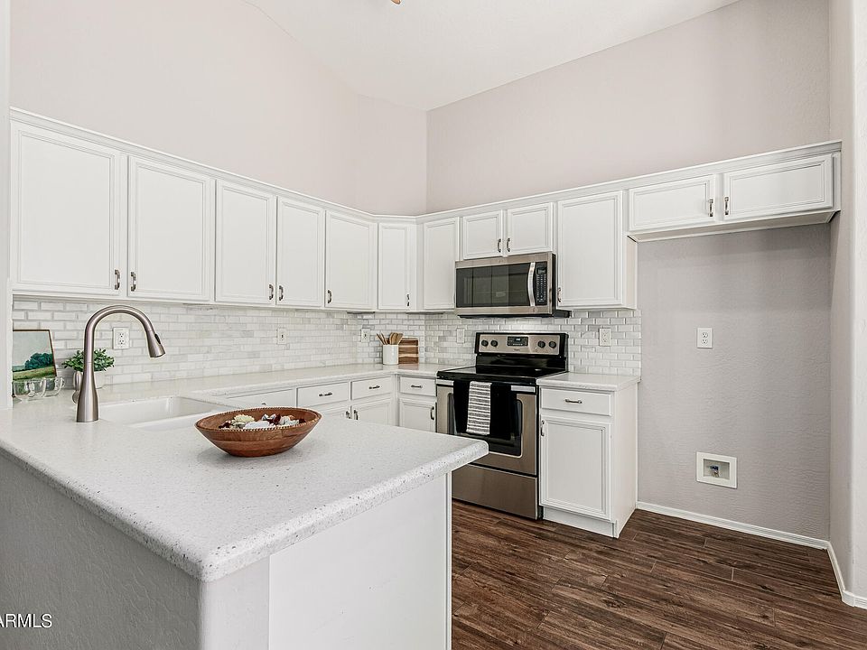 Nestled in the gated community of the Villas at Alta Mesa, this 3 bed 2 bath home is sure to wow with its low maintenance landscape and curb appeal. Step inside to an open floor plan and wood look tile throughout. The light and bright upgraded kitchen allows for casual dining at the island and features SS appliances and tile backsplash. The primary bedroom offers dual vanities, tall ceilings, and a walk in shower. Step out to your private back yard with easy maintenance desert landscape, a covered patio, and no direct neighbors behind. Alta Mesa has access to community parks, a pool, and a golf course. Come take a look and make Ivyglen home today!