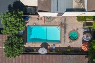 Sparkling saltwater poolCorner unitSpacious primary suiteBright layoutHeated spaOutdoor bbq areaCentral air and heat