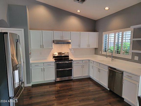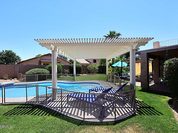 This tri-level home in Manistee Ranch is a must-see! Situated on a corner lot, the backyard features a sparkling pool with pergola shade cover, new pool filter, fence and pool decking perfect for outdoor entertaining. Along with a backyard that includes a raised garden for year round veggies or flowers, grass play area and RV gate. The home boasts upgrades throughout, including an open kitchen with plenty of cabinets, remodeled bathrooms and wooden shutters. The spacious family room includes custom made bookcases and sheer shade blinds. The master bedroom has a balcony for a peaceful retreat. The solar panel lease is prepaid for maximum energy savings for the next year and a half. The solar lease can then be renewed or panels removed. Located in Glendale, close to the Cardinals Stadium and ASU West Campus, offering entertainment and educational opportunities and Downtown Glendale restaurants and shops. Don't miss this fantastic home in a prime location.