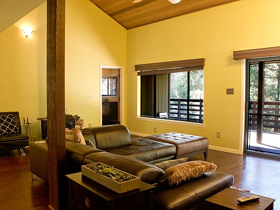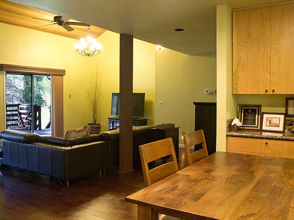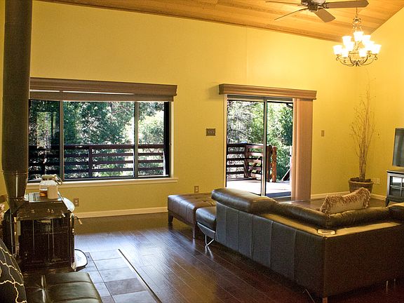 Nestled in a quiet cul-de-sac, just a stroll to Strawberry Creek and Idyllwild Arts, this elegant single story home is the ultimate in contemporary quality. Enter through custom tiled foyer, w/closets either side, into spacious, high-ceiling living room, perfect for entertaining, w/wood stove and access to large deck overlooking the forest. Dining area w/custom built-ins leads to calming solarium. Large gourmet kitchen shows all new appliances + granite counter tops. Separate entry into utility/mud room. Master suite includes propane stove, private access to deck + spacious bathroom w/his/her basins and Jacuzzi tub. Additional two bedrooms share tiled full bath. Huge bonuses are finished rooms upstairs, whole house humidifier, alarm system, under-house workshop and RV hookup. Entire house has been newly remodeled, with cherry wood and Italian tile flooring, warm colors and extreme attention to detail. Extra plus is ground level entry basement work shop.