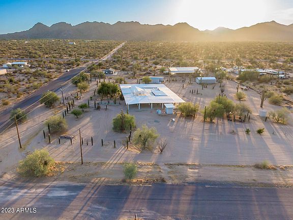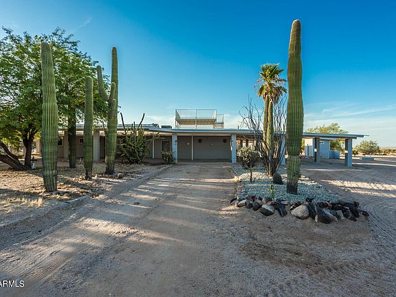 NESTLED IN TALL SAGUARO CACTI with room to roam, you'll love this 3 acre plus property, featuring ENERGY EFFICIENT BLOCK CONSTRUCTED home with 3 bedrooms, primary bedroom has his/her walk in closets and sitting area, 2 full baths, plank tile flooring, spacious kitchen with new granite counter tops, new refrigerator, Arizona room, family room, great room, large laundry room with sink, dual pane windows throughout, extended 2 car garage with built in shelves, 8 car carport, huge covered patio, two large NEWLY CONSTRUCTED OUT BUILDINGS; 40'x25', and 30'x20', and one 8'x10' storage, OBSERVATION DECK that has mountain views forever, gated entry, PRIVATE WELL!. Golf Cart and one small tractors convey ... This unique and charming home is a must see