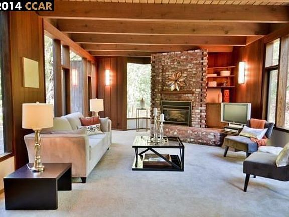 Mid-century Modern in Alhambra Valley. Nestled in the trees on 1.31 mostly flat acres. Large picture windows throughout; Spacious formal living room, separate family room, separate office, updated kitchen & baths; 2 Barns, Newer decking surrounds the property, peaceful creek on property, contemporary architecture. Designed by renowned Bay Area architect Henry Hill
