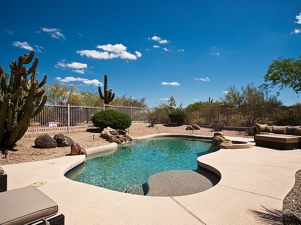WOW, Fully Furnished 4 bed 3 full bath home for rent in Desert Ridge. Golf course, desert, mtn views, pebbletec pool, 3 car garage and granite. Features include soaring ceilings, bar, plantation shutters,BBQ, patio furniture, 3 car garage plus rv gate. A gourmet kitchen that includes stainless steel appliances, gas cooktop, slab granite tops, full height back splash. The master suite features huge walk-in shower, soaking tub, and ample walk in closet. Enjoy morning coffee on your private walk out deck with views of Wildfire Golf course, mountains and natural desert.Call today for your private showing