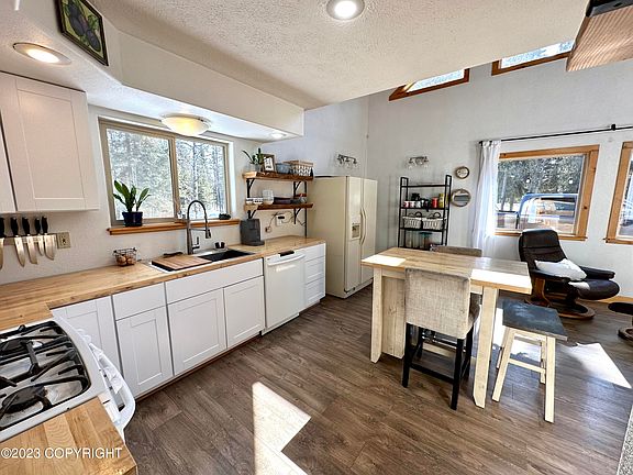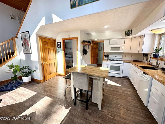 Secluded well kept home on 1.33 acres. Newly remodeled kitchen. Open concept with vaulted ceilings. Main level has a bedroom and full bath. Second level has a large bedroom with half bath and an office/sitting area. Landscaped yard with a shed and chicken coop.