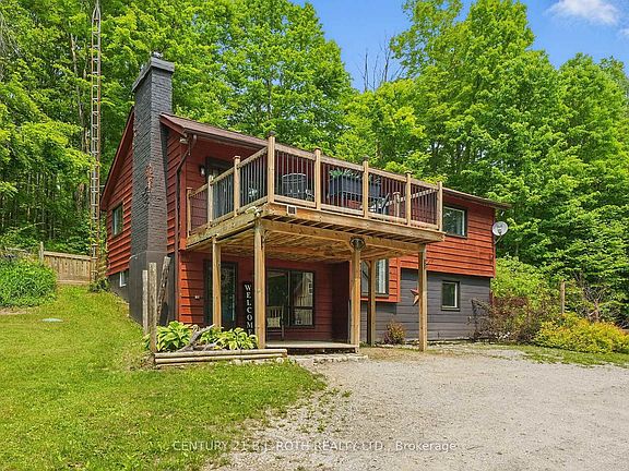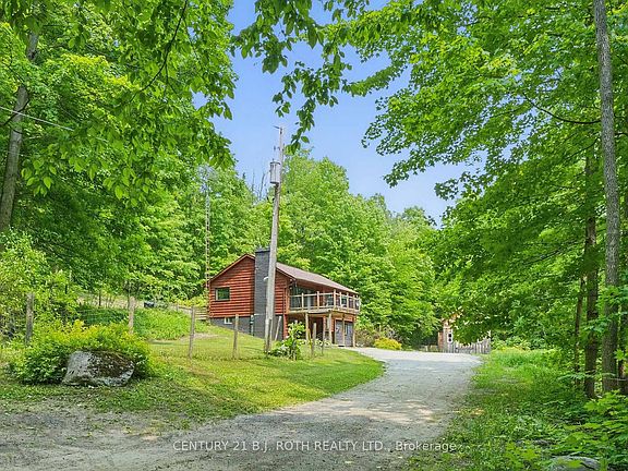 This beautifully updated home is set on 17 scenic acres with mature trees, offering exceptional privacy and a peaceful, natural setting. With 2,092 finished square feet, this 3+1 bedroom, 2-bathroom home perfectly combines modern comfort with farmhouse character. The fully finished lower level offers versatile living space, featuring one of the bedrooms, ideal for guests, a home office, or in-law potential as well as a full bathroom with a stand-up shower. Custom built-ins surround the electric fireplace, creating a warm and inviting atmosphere, while exposed wooden beams add timeless charm. Upstairs, the main floor features an open-concept layout with vaulted ceilings, abundant natural light, and a spacious living area designed for both everyday living and entertaining. The kitchen, fully renovated in 2019, offers a thoughtful blend of style and function. From the second-story balcony, enjoy beautiful views of the surrounding forest, a perfect place to start or end your day. Additional updates include most windows replaced in 2018, a new septic tank installed in 2020, and risers added in 2023. The home is equipped with an energy-efficient geothermal heating and cooling system, ensuring year-round comfort with lower operating costs. The backyard has been excavated to create a practical outdoor area that's perfect for gatherings, gardens, or simply enjoying the quiet outdoors. Located just minutes from Copeland Forest, Moonstone, local ski hills, and Highway 400, this property offers the best of rural living with convenient access to recreation and amenities. A rare opportunity to own a move-in ready home on a truly stunning piece of land.