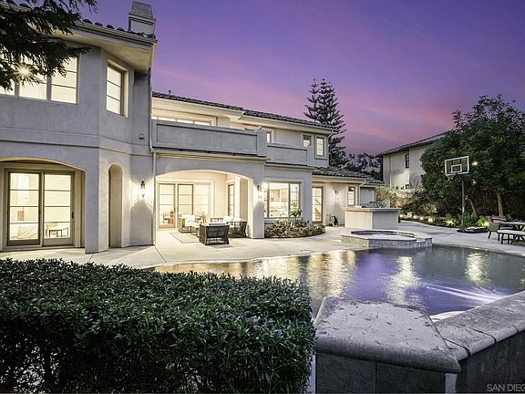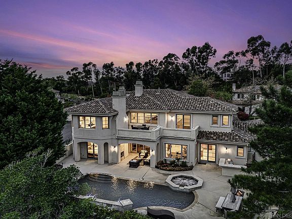 Custom-built luxury estate on premier, elevated corner lot, in the Meadows Del Mar West Gate. Great Convenience to Grand Del Mar clubhouse, 3 Star Michelin Guide restaurant Addison,& Fairmont Grand Del Mar Resort. Perfect for families or multi-generational living w/junior suite & BR/office downstairs. Designer finishes include Granite counters w/ custom backsplash, huge center island w/ bar seating, & new commercial-grade appliances. Freshly painted interior, chic updated lighting, and dual staircases for easy access between levels. Large sliders lead you to the lush entertainer’s backyard. Enjoy the convenient outdoor kitchen or cozy up to one of the 5 fireplaces. Yard has a gorgeous pool and above ground spa, multiple lounging areas, and fruit trees. Welcome to your coastal hideaway