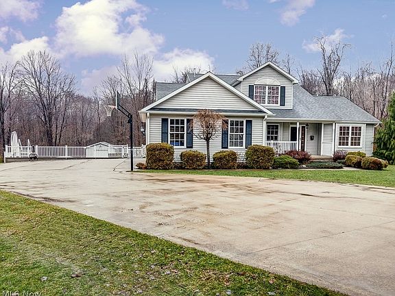 Gorgeous Cape Cod Nestled on Almost 7 Acres! 3 Bedrooms, 2.50 baths. Over 2500 sq ft and 3 car attached garage. Welcoming front porch and inviting foyer with coat closet leads into a front room that features a built-in window bench and french doors and can be used as an office, dining room or front sitting room. Greatroom boasts vaulted ceilings, a fireplace and a wall of windows offering stunning views of the property. Eat-in kitchen features stainless steel appliances, an island with counter seating, gorgeous backsplash and beautiful views of the backyard and pool. Convenient half bath and laundry room right off kitchen. First floor master bedroom has a private bath and walk-in closet. Upstairs offers 2 additional bedrooms and 2nd full bath. Finished basement has Pergo flooring, lots of room for entertainment, storage and many more options! Privately wooded backyard with large deck provides a great space to enjoy nature and a 16x16 storage shed. Recent updates: All new kitchen appliances in 2016 with 4 year warranty, new above ground pool in 2014, new hot water tank in 2013, new furnace in December of 2012. Kitchen appliances stay. America's Preferred Home Warranty included! Great location near parks, golf, restaurants and freeway! Terrific opportunity!