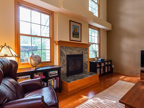Gorgeous 2 story end unit with over 30K in upgrades. 2 bedroom, 2 bath and 2 car garage. Formal dining room, eat-in kitchen and 2 story vaulted living room with gas fireplace and extra windows for abundant light. Lovely walk-out from dining room to patio on huge corner lot overlooking pond & woods. Remodeled huge master bath. New roof with added insulation. Newer SS appliances, flooring, lighting and doors. New water heater. Great management company & HOA.