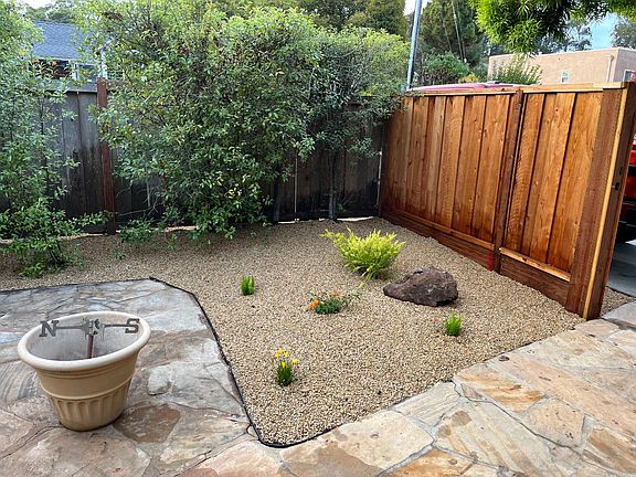 Cozy fireplaceMature fruit treesExpansive backyard deckEnclosed private courtyardSeveral inviting seating areasDetached full-car garageUnique porthole window accents
