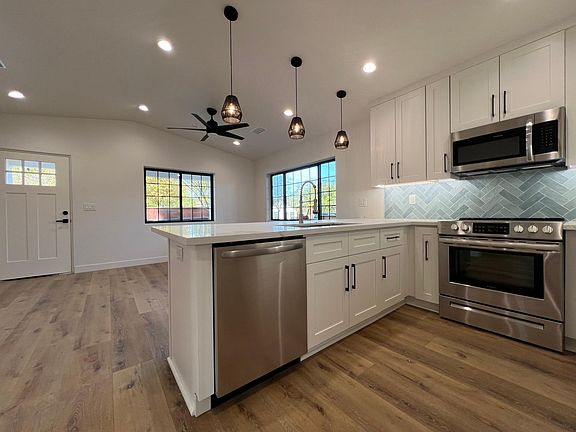 Brand New Construction Home close to Downtown Paso Robles and within walking distance of Paso Robles Marketwalk. This modern Spanish style home offers 2 bedrooms, 1 full bath, vaulted ceilings, open floor plan, bar seating, stylish kitchen, luxury vinyl plank flooring throughout, and an attached one car garage with laundry. This property comes with a water conditioning system, solar, refrigerator, washer & dryer, and large yard. Just a quick stroll to the grocery store, coffee shop, restaurants, and wine! The covered front porch adds another outdoor living space and water is included for a flat rate of $50/mo! Owner pays for water conditioning/softening system and trash. Electricity included up to allotted amount from solar panels, tenant responsible for any overage. Prefer a one year lease. Pet considered with approval, pet deposit & renters insurance.