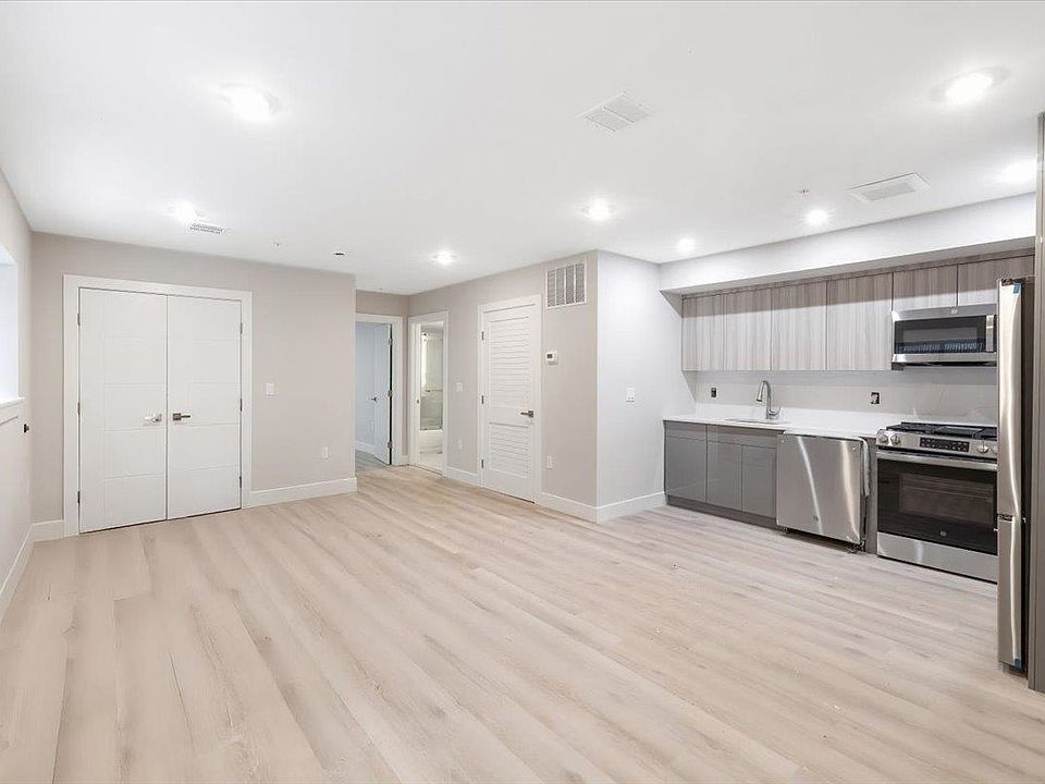 This brand-new, modern 1-bedroom, 1-bathroom apartment offers a private entry and features an open-concept living and dining area with an electric fireplace. Plenty of storage, with two coat closets that welcome you in the living room. The kitchen is equipped with high-end, stainless steel appliances and high-gloss European-style cabinets. Enjoy plenty of natural light, a shared backyard, and the convenience of in-unit laundry, central heating/air, and an intercom system. The property is located near NYC transportation, shops, and restaurants.