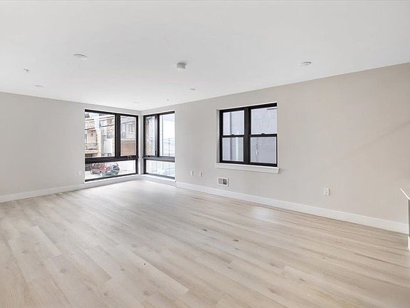 Available now: this stunning new construction unit offering Shared Backyard and 2 Private Parking spaces can be your new home! Open your entry door to this modern apartment featuring 2 bedrooms, 2 bathrooms, open concept living space with LED electric fireplace, wrap around windows that flood the area with natural light, higher ceilings as this is the top floor unit. The apartment faces southeast offering NYC skyline views as well as sunsets. The chef's kitchen features white high-gloss European Style cabinetry, stainless steel premium appliances, modern backsplash, central island with plenty of room on the counter space. This unit offers a relaxing spa like bathroom with silver hardware and luxurious vanity. Other perks include big washer and dryer in unit, central/heat/air, and Intercom System. NYC transportation, restaurants and shops at your fingertips.