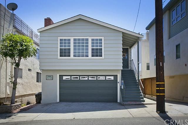 Imagine being just blocks from the beach and having a huge yard! This darling beach home is located walking distance to everything & has 1,764 of living space. Enjoy 3 bedrooms & 2 bathrooms with plenty of upgrades and natural light. Enter into a large living room with hardwood floors, new built-in cabinets, fireplace and lots of storage space. The dining room has been adorned with an awesome new lighting fixture with plenty of room for those dinner parties at home. The kitchen is right off of dining room, with a small breakfast bar, newer white appliances, and granite counter tops. On this same level are 2 bedrooms, and full bathroom with pedestal sink and travertine floors. Both bedrooms are large, with custom built-in shelving and drawers. The lower level of this home has a private master bedroom with a large closet and bathroom with custom made cabinetry special for this space! As you enter this floor you walk into a media room that leads to the back yard. The yard has tall trees for privacy, grass, built-in deck with cover area, sand boxes for kids and rustic planters. The home has a 2 car garage but 5 car parking. Chances are you'll be walking most places with the proximity to the beach and downtown area of Hermosa, but great to have the option!