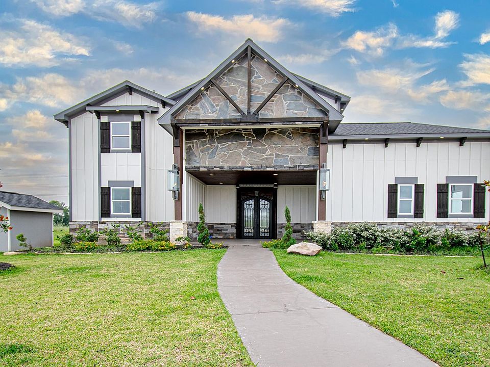 Come discover what Angleton, TX has to offer! This property sits on 1 acre and stands as the most expansive offering within the subdivision BAR X. Take a look at this impressive grand 5 Bedrooms, 3/1 Baths custom built craftsman modern farmhouse that offers you ample space for your entire family and gives you a feel of both comfort and luxury. Custom iron entry double doors, 26" soaring ceilings, custom beautiful kitchen equipped with stainless steel appliances. Upstairs loft area can be used as a lounge area and is ready with custom built-ins for a wine room! Spacious upstairs game room/media room for you to enjoy game and movie nights. Enjoy your evenings in your very own outdoor pavilion with a built-in kitchen and fireplace. Schedule your showing today!