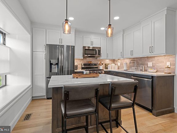 Nestled in the desirable Westover Crossing community, this exquisite end-of-row townhouse offers a harmonious blend of comfort and luxury, perfect for those seeking an elevated lifestyle. With a major renovation of kitchen and half bath completed in 2021, this home radiates modern elegance while retaining its classic colonial charm. Step inside to discover a thoughtfully designed interior that welcomes you with warm, inviting spaces. The main living area features rich hardwood flooring creating a cozy atmosphere. A stunning wood-burning fireplace, framed by elegant brick, serves as a focal point, perfect for intimate gatherings or quiet evenings at home. The dining area flows seamlessly into the kitchen, where culinary enthusiasts will appreciate the quartz countertops, custom cabinetry, and a spacious island, ideal for meal prep and casual dining. The kitchen features high end LG appliances such as a built-in microwave, gas range, and refrigerator. There is also an Energy Star built in dishwasher to complete this stylish kitchen space. The second-floor features 2 bedrooms and a fully renovated full bath in 2024 with high end fixtures, and features Air Massage tub which offers a spa-like retreat. The completed third floor provides a spacious office or optional third bedroom. While recessed lighting throughout the first floor enhances the ambiance of each room. Venture outside to enjoy the beautifully maintained exterior, featuring a charming brick front and stucco accents. The property borders an open common area, offering peaceful wooded views from the living room deck ideal for relaxing. The full walk-out basement is waiting for you to finish and enjoy the extra space. The community amenities are a true highlight, with access to a refreshing in-ground pool, pickleball courts, and a recreational center. Parking is a breeze with an asphalt driveway accommodating two vehicles, along with additional off-street parking. This property not only offers a luxurious living experience but also a lifestyle enriched by community amenities and natural beauty. With its prime location just a short distance from commuter rail stations, convenience is at your fingertips. Do not miss the opportunity to call this stunning townhouse your home, its design perfectly blends comfort with elegance.