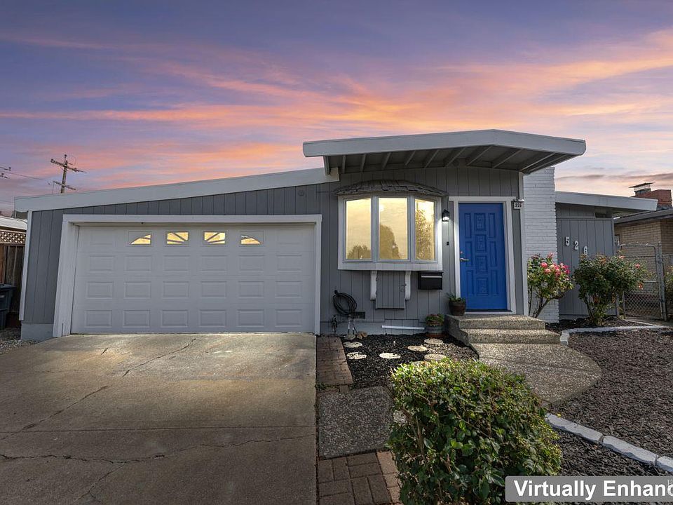 Bright, single-level 3BD/2BA with charming exposed-beam ceilings and warm hardwood floors. The living room flows to a sunny flex area perfect for dining or a home office. The kitchen features white cabinetry, tile floors, and a stainless steel gas range. Two updated baths: one with a walk-in shower, bench, niches, and grab bar; the other with a tub/shower combo and statement hex-tile floors. Bedrooms are comfortable and light-filled. Two-car garage for parking and storage. Convenient Vallejo location with quick access to I-80 and Hwy 37. Close to local shops, dining, and parks. Move-in ready and easy to love.