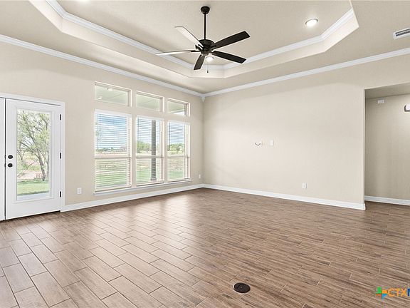 Discover this beautifully crafted home on 1.045 acres in Lampasas County, offering thoughtful details and modern comforts throughout. Step inside to find raised ceilings, rounded corners, and an inviting open layout enhanced by crown molding and oversized trim.