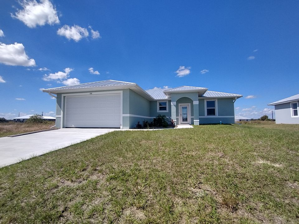 Madison II Model - Port LaBelle, Banyan Village 3 Bedroom, 2 Bathroom, 2 Car Garage - on a greenbelt! Concrete Block Living Area: 1533 sq ft Covered Entry: 56 sq ft Garage 444 sq ft Total: 2033 sq ft Ceilings: 9'4", plus vault Roofing: Metal Roof Windows: Hurricane Impact! Flooring: 12"x24" Tile throughout Countertops: Black Granite Cabinets: White Stainless Steel Appliances: · Refrigerator · Dishwasher · Microwave/hood · Range Exterior: Stucco · 10,000 sq ft sod · Landscape Package 2023 NEW CONSTRUCTION!