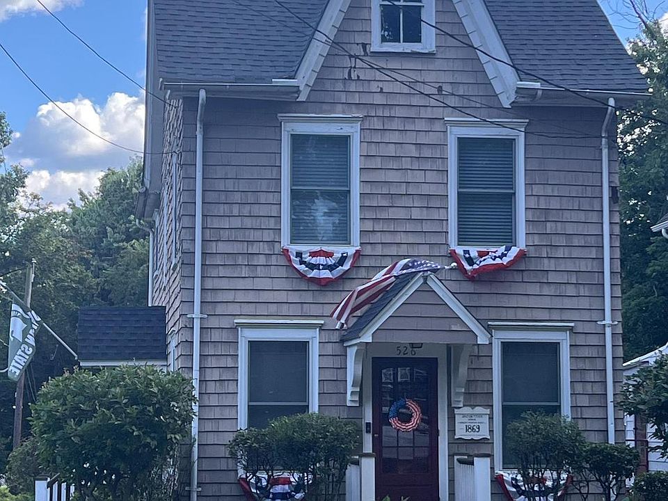 Professional Photos to come. Historic Farm House with charm and character--The Jacob Tiver House. You can move right in or renovate to make it your own. Enter the front door to a spacious Living Room with original hardwood floors, three new Pella windows that tilt for cleaning, pocket doors, crown molding and custom window treatments. The Pella windows are throughout the entire house except one original quaint window in a 3rd floor bedroom. The Living Room flows right into a Formal Dining Room with mahogany hardwood floors, crown molding, 2 Pella windows for natural light, and a side entry door. Continuing to the back of the house is the newer gourmet Kitchen. It has hardwood floors, pull out pantry, Thermador 6 burner gas range, built in Thermador espresso maker, Thermador microwave, Whirlpool french door refrigerator, Bosch dishwasher, Whitehaus porcelain farm sink, granite countertops, a "doggie bowl drawer" and plenty of cabinet space. Right off the kitchen is a natural light filled breakfast nook with an Anderson double slider and 2 flanking matching ceiling to floor Anderson windows that look onto the deck and the deep back yard. An adorable half bath finishes off the main floor. Moving upstairs the custom wood railing has a special way of dismantling to allow ease of moving furniture. The second floor has a nice size primary bedroom with 2 closets and carpeting. A second bedroom that is also a good size has a closet and carpeting. The renovated hall bath has a Jacuzzi tub, marble tile with diamond accent, custom wainscoting, large linen closet, medicine cabinet, bathroom fan, and an octagon window that opens. The convenient second floor laundry room with a tile floor and tile going half way up the wall includes the washer and dryer. Upstairs on the 3rd floor are 2 more adorable bedrooms. Some other amenities include new electrical, 2-zoned air conditioning, new roof, electric dog fence and a sprinkler system. In the backyard is a charming rustic barn that is used for storage. And the best part is a gorgeous wrought iron gazebo that is beautifully placed just before the beginning of a quaint little park. The current owner used to invite people to take their prom and wedding pictures in this perfect setting. There will be an additional list of more amenities soon. One of the breakfast nook windows has cracked panes--currently it is "as is". The seller has the cost of the window for your information this does not include installation. The seller was going to put a 3 story addition off the back and the garage to be renovated with a 2nd floor office addition. She has plans and everything was approved and permits are still open.
