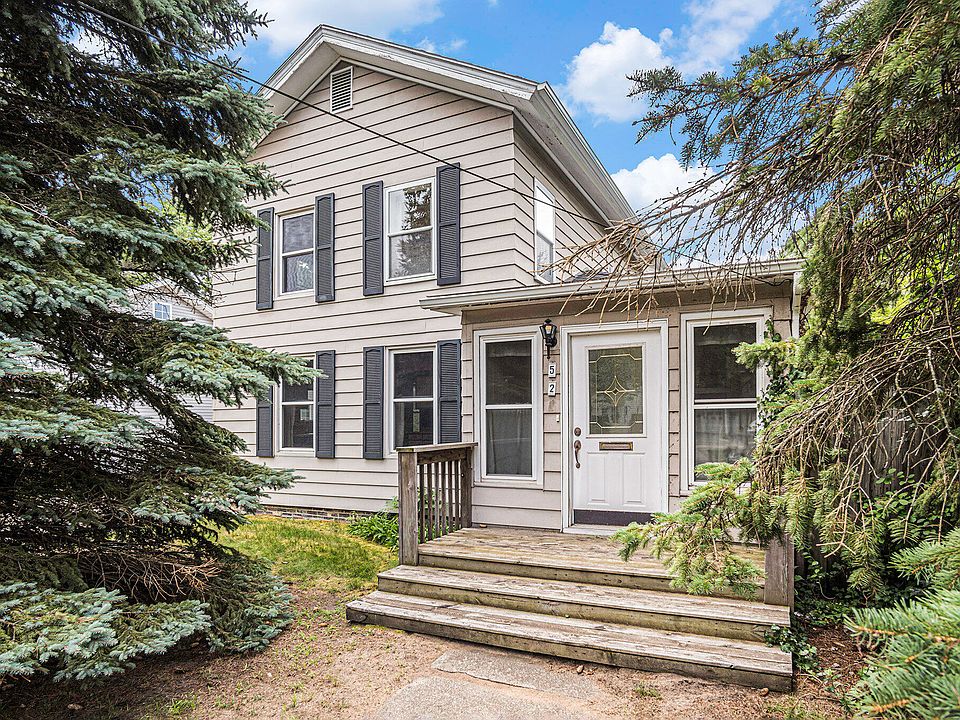 Check out this two story home in the Village. The location is perfect. Close to everything - shopping, schools, restaurants, parks, and Spring Lake Beach. This 3 bedroom home offers great space. The kitchen is open to the living room and has a bedroom on the main level, plus main level laundry with a glassed in shower. The upper level has two more bedrooms and a large full bath. A detached oversized two stall garage has built-in storage. Move right in or update this home with your own touches. Vacant and immediate possession.