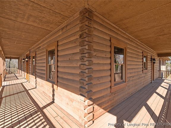 Escape to this custom-built log home on 5+ acres, offering privacy, rustic charm, and modern comforts. Nearly 3000 sq. ft. of open-concept living features warm hardwood floors, rich wood cabinets, stainless steel appliances, and a gas range. The living room, centered around a stone fireplace with gas logs, opens to a spacious back porch, perfect for relaxing or entertaining. The main-floor primary suite is a private retreat, boasting porch access, a walk-in closet, and a luxurious ensuite with a freestanding soaking tub and tiled shower. A versatile basement, accessible from inside and out, provides extra storage or functional space.