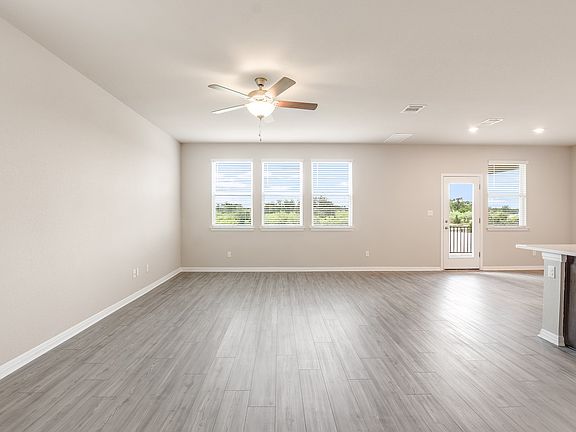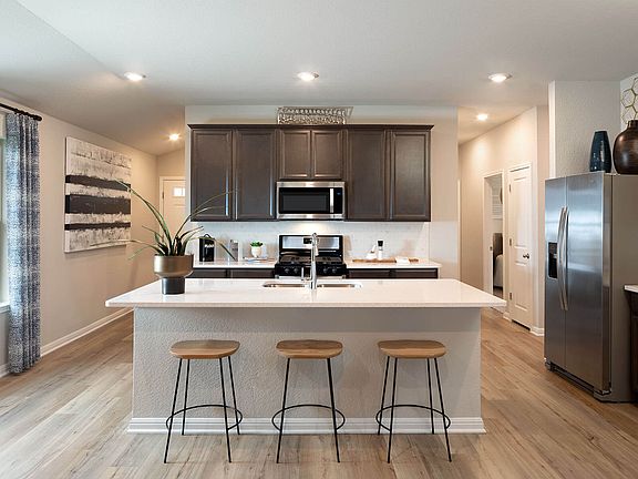 Brand new, energy-efficient home available NOW! Volume ceilings in the Lassen's foyer make a striking impression. The sizeable kitchen island anchors the open living area. Upstairs, the kids will love the versatile loft while you appreciate the private primary suite. This community brings the feel of a relaxing ranch on the scenic edge of the Texas Hill Country to a fantastic location near Liberty Hill schools, local attractions, shopping, dining, and more. Residents can enjoy a covered pavilion, firepit, fishing pond, pool, dog park, trail system and sports park. Each of our homes is built with innovative, energy-efficient features designed to help you enjoy more savings, better health, real comfort and peace of mind.