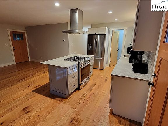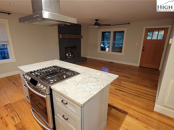 This is an in-town GEM! This immaculate 2 bedroom, 2 bath cottage is tucked away in the woods for privacy, but just a stone's throw away from everything Boone and the High Country has to offer! The inside was completely remodeled just a few years ago by the previous owner. It boasts an open floor plan with beautiful hardwood floors throughout, tile and solid surface countertops in baths and kitchen and even a rain shower in the primary en suite bath. There are Samsung stainless steel appliances in the kitchen, including a gas cooktop range that overlooks the living room and fireplace with gas logs. A cozy screened porch was added a few years ago off the living room to enjoy those cool mountain evenings. All inside walls have been freshly painted along with staining of the outside decks. The backyard has a fire pit with even some wood for your fires. Landscaping is easy maintenance, there's a carport, storage building and if that's not enough, the driveway is pretty much level!