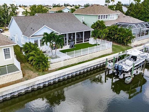 STUNNING WATERFRONT HOME with Over $200,000 in UPGRADES! Welcome to your dream coastal retreat! This beautifully updated one-story waterfront home blends modern luxury with the relaxed Florida lifestyle. Featuring a 10,000 lb boat lift, you can set sail right from your own backyard and be out on the open water in minutes. A comprehensive remodel completed in 2021, paired with a new roof installed in late 2019, means all the major work has already been done. The chef’s kitchen is a showstopper with updated cabinets, sleek countertops, premium appliances, and reverse osmosis drinking water at the sink. Both bathrooms have been completely remodeled, including a spacious master bath with an upgraded 8-foot glass shower door. Throughout the home, you’ll find new in 2021 flooring, baseboards, interior doors, LED lighting, blinds, and fresh interior and exterior paint. The primary suite includes a redesigned custom closet, and the kids’ closet has also been upgraded for extra functionality. Outside, enjoy new pavers on the front and back porches, lush front landscaping, and low-maintenance backyard turf that's perfect for year-round enjoyment. Additional highlights include a new Goodman A/C (installed August 2025), whole-home water softener, and a smart security system. Every inch of this home has been thoughtfully updated to offer both style and comfort. Move right in and start living the waterfront lifestyle you’ve been dreaming of!