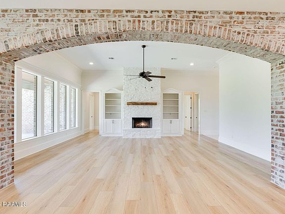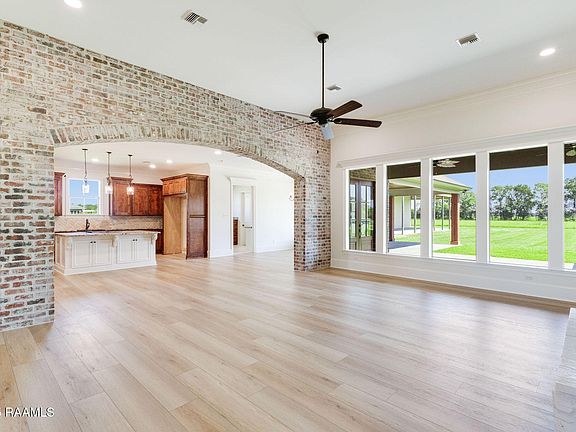This beautiful custom-built home, constructed just 10 years ago, offers nearly 3,200 square feet of thoughtfully designed living spaces...FOUR large BEDROOMS, an OFFICE, large utility room, AND an incredible 40' x 60' METAL BUILDING (2400sf!) with THREE 16' OVERHEAD doors. The interior of the home features TRIPLE crown molding, a striking BRICK ARCHWAY accenting the kitchen and living room, a wood-burning painted stone FIREPLACE and built-in bookshelves, oversized WINDOWS that frame views of the expansive backyard. Recent upgrades include all new fresh PAINT, new FLOORING throughout, and brand-new appliances such as a DOUBLE oven, new built-in microwave, and new dishwasher, a sleek down-drafted cooktop, exotic granite counter-tops, plenty of cabinets, and a large WALK-IN pantry. The space for the refrigerator can accommodate BOTH a full refrigerator AND a freezer. The primary suite is a luxurious retreat with a five-piece ensuite bath featuring a tiled WALK-IN SHOWER with SEATING, air-jet SOAKER tub, and a large walk-in closet with built-in shelves. Bedrooms 2 & 3 share a DOUBLE-ENTRY bath with individual PRIVATE vanities. Bedroom 4 includes a PRIVATE FULL BATH. The OFFICE is equipped with custom shelving and cabinetry. The utility room has loads of storage, plenty of countertop space, a laundry sink and a private toilet. You'll love the 28ft WIDE CARPORT, wide enough to fully open the doors on both of your vehicles! When entertaining, it can also serve as a 728sf back patio, an extension of the 224sf covered patio! The limestone driveway can accommodate about a dozen vehicles. This home sits on 3.25 scenic acres and includes the huge 2400sf metal building and an additional 1200sf lean-to/covering on concrete, providing even MORE space for parking or a multitude of uses. This high and dry home has never even come close to flooding. This stately, exceptionally well built home on acreage is truly a UNIQUE find! OWNER/AGENTS