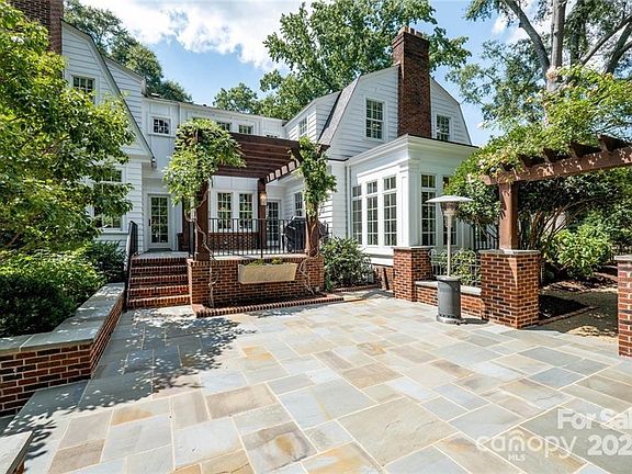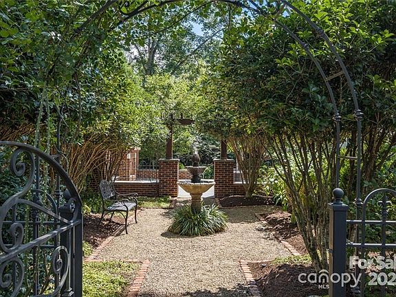 This historic Dutch-Colonial Revival home was completed May 1929 by George Watts, a professor at Davidson College. The property was beautifully restored and expanded in 2016, by CM Knight Fine Homes to 3895 sf which includes 4 bedrooms, 3.5 baths, spacious great room with fireplace and a wall of windows! The kitchen is accented with marble counters, walnut top island, Wolfe range, wine cooler, pantry & built-in pantry cabinets which provide ample storage. Butlers pantry bridges to formal dining room embellished with wood trim. Private library-study, sunroom & office gives balance to the main floor. Gleaming hardwood floors & arched doorways add to the architectural character. Natural light inundates entire home. Outdoor stone patio, brick fireplace, quaint garden area with fountain surrounded by mature trees & flowers make entertaining a pleasure. The detached garage features built-in shelving & flex area.