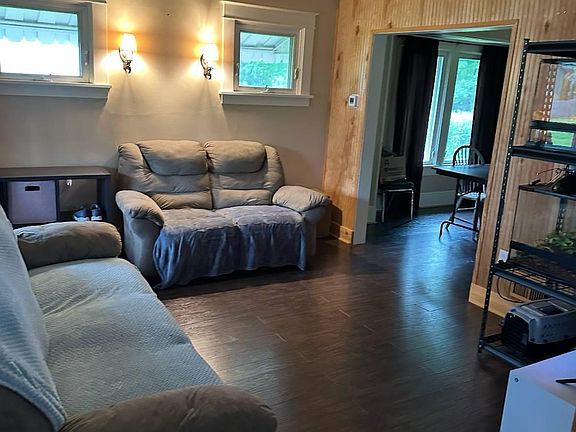 Cute 1 1/2 story home on a large .24 city lot. 2 BR & 1 bath Large enclosed sunporch off the kitchen. Wood floors. Off street parking.