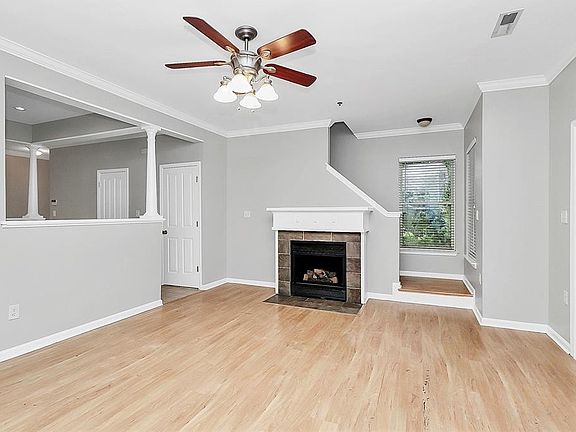 A charming, covered front porch invites you into a bright and airy living room featuring a cozy fireplacean ideal retreat after a long day. The galley-style kitchen flows effortlessly into the dining area, creating a warm, open-concept space that's perfect for both everyday living and entertaining.