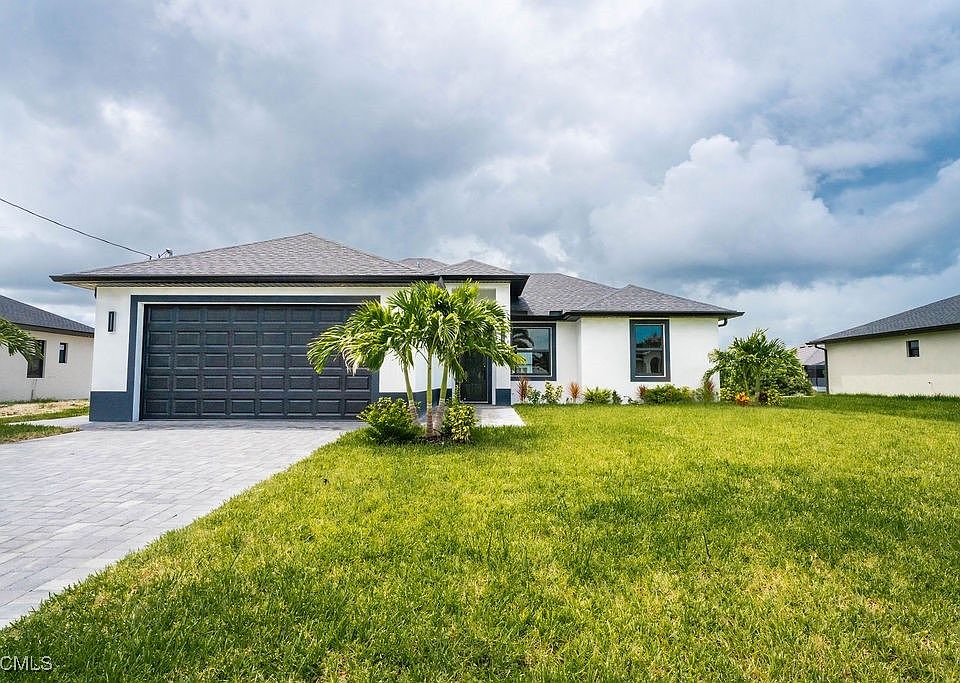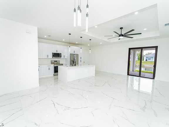 This brand-new waterfront home in Cape Coral features an open layout with tile flooring throughout, a bright kitchen and living area, and quality finishes designed for everyday comfort. The walls have a level 4 finish for a smooth, modern look, and gutters are installed around the entire home with drainage directed away from the foundation for long-term protection. Impact windows provide energy efficiency, peace of mind, and extra storm protection. Outside, you’ll enjoy an extended lanai with a built-in outdoor kitchen, perfect for relaxing or entertaining, along with paver walkways that add curb appeal and functionality. The property is connected to city water and sewer with a very low assessment balance, has no HOA restrictions, and NO FLOOD insurance is required. Centrally located, this home is just minutes from shopping, dining, schools, and all that Cape Coral has to offer, making it a practical and desirable choice in one of the area’s fastest-growing neighborhoods.