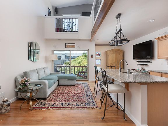 Experience coastal living at its finest in this beautifully designed 2-bed, 2-bath condo, perfectly positioned in the heart of Nye Beach. Boasting Pacific Ocean views, this home features an open floor plan that effortlessly combines style and comfort. The kitchen is complete with stainless steel appliances, granite countertops, an island with a sink, and bar seating. With a spacious living room, where a gas fireplace creates the perfect ambiance for cozy nights in. Step out onto the balcony to enjoy BBQs, stunning sunsets, and the lively atmosphere of Nye Beach. Upstairs, the open loft living space offers endless possibilities—a family room, craft area, or home office, tailored to your needs. The master bedroom is a retreat of its own, featuring a walk-in closet and dual sink vanity. Ample storage throughout ensures plenty of space for everything. This condo provides the ideal blend of luxury and convenience, all just steps from the beach, dining, and shopping. Don't miss your chance to own this piece of paradise!