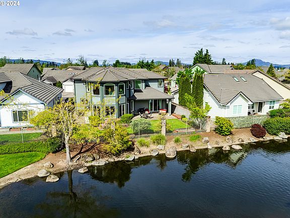 OPEN HOUSE SUNDAY 5/5 12-2 pm. Gorgeous 2004 4 bedroom, 2.5 bath home with pond views adjacent to Emerald Valley Golf Course. Home features luxurious amenities including Brazilian Cherry floors & cabinetry, high 9' ceilings, built in speakers in many rooms, elegant Hunter Douglas window coverings, two patios, manicured grounds complete with a water feature in front and pond view in back. Updates include stainless steel appliances including double ovens, a refrigerator, & Electrolux washer and dryer. Additional upgrades include interior and exterior paint, a new central AC unit installed in 2021, upstairs carpet replaced in 2022 and a stylish security door in front. The love and attention to detail the current owners have placed in this home is evident everywhere you look.As you enter the home you are greeted with high ceilings, gorgeous Brazilian Cherry floors further accentuated by artistic wood inlays. The two story foyer can be viewed from a balcony above. The living room is large with a view and access to the covered patio, the backyard and pond beyond. A warm fireplace and hearth complete the room. architectural details abound including pillars & display nooks. The gourmet kitchen is a chef's delight with a huge island with breakfast bar, 5 burner gas range, a commercial style hood and a prep sink. Cabinetry abounds and is crafted from Brazilian Cherry matching the flooring. The laundry room is equipped with updated washer and dry, sink and an above average sized walk in pantry.Upstairs are four bedrooms. The primary has magnificent views of the pond and beyond. A luxurious jetted soaker tub and walk-in tile shower with built in seat has room for two. Don't miss the primary walk-in closet offering an abundance of storage and hanging space as well as a built-in laundry chute.In a cul-de-sac within a five-minute stroll from Emerald Golf Course. From your manicured yard enjoy the spectacular sunrise and the view of the mountains in the distance.