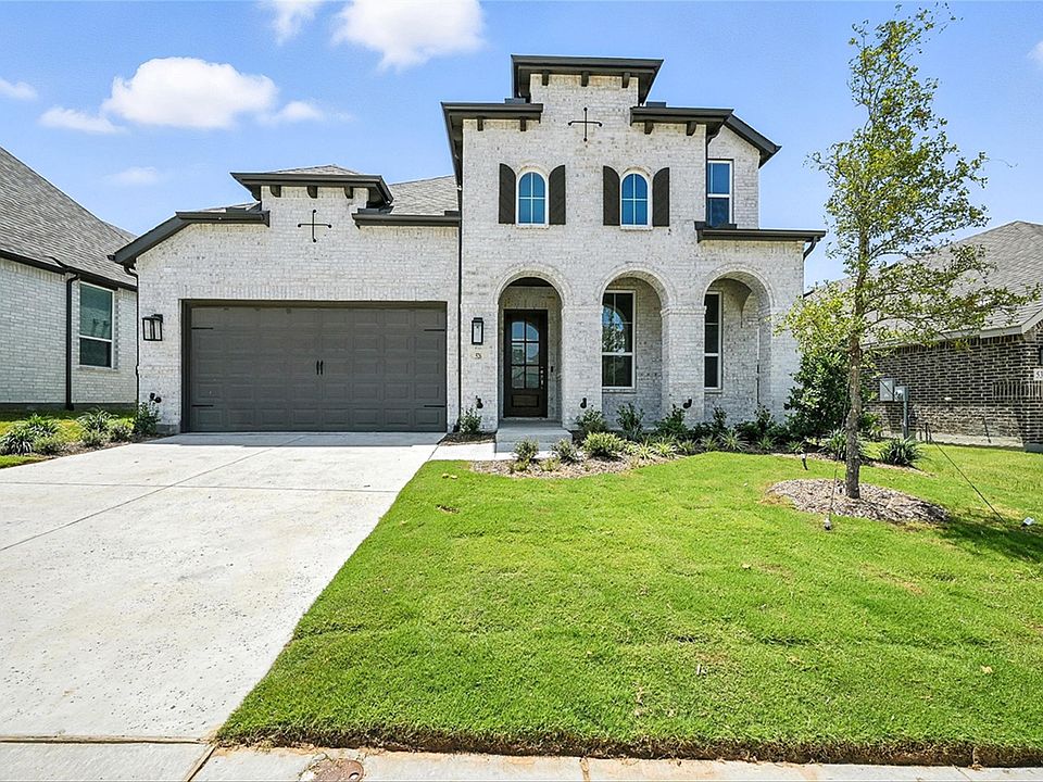 MLS# 20852152 - Built by Highland Homes - Ready Now! ~ Amazing Middleton plan offering 4 bedrooms, 4.5 baths, study in front of home, media room upstairs, open wrought iron railing throughout. Extended outdoor living, bay window in primary bedroom, freestanding tub, separate shower. Built in oven and microwave in kitchen, 5 burner gas cooktop, pot and pan drawers, 10ft. tile fireplace in family room!!
