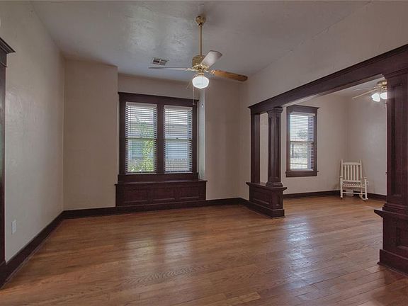 So much charm and detail in this precious 2 bedroom 1 bath property. The original woodwork and wood floors are gorgeous! Features include 9 ft ceilings throughout, spacious living/ dining and kitchen areas, additional eat in kitchen space, nice yard with privacy fence, and large covered front porch. The home comes equipped with an alarm system. Don't wait to schedule your private tour!