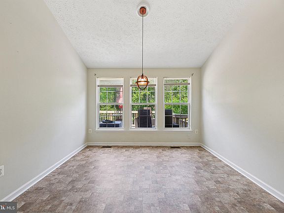 Lovely 3 bedroom 1.5 bath brick front townhome on cul-de-sac in Joppa. Main level living room and dining room has hardwood flooring and eat-in kitchen, sunroom and half bath. Access to raised deck with tranquil wooded area in backyard. Upper level has 3 carpeted bedrooms and 1 full bath with double vanity. Finished lower level has carpet flooring and provides access to backyard. Unfinished lower level has space for storage and laundry room. Must See!!!
