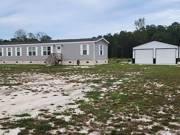 Don't let the single wide fool you. This beautiful (14' x 76') home sits on 2.5 acres of cleared land. This practically new (2022 model) ENERGY EFFICIENT home is unlike most manufactured homes you see. This home has all sheetrock walls, smooth ceilings, a beautiful kitchen island, stainless steel appliances, is energy efficient to the max and sits on a solid brick foundation. There are three bedrooms, 2 and 1/2 baths, and a spacious open kitchen/living/dining area. Outside is a 24 x 25 two door garage; cement floor, fully wired and ready for what ever you choose. There is also a 10 x 10 concrete pad in the backyard. With this large lot the possibilities are endless. There are NO RESTRICTIONS! VA/HUD APPROVED! Special financing through Rocket Mortgage is available. Find info in documents