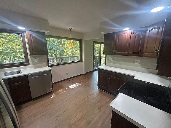 Experience country club living at its finest! Nestled within the desirable Spring Lake Country Club, this charming home offers stunning bluff views and peaceful wooden and creek views in the back. Inside you'll find two primary suites, two cozy fireplaces, four full bathrooms and a spacious garage complete with a separate golf cart door.