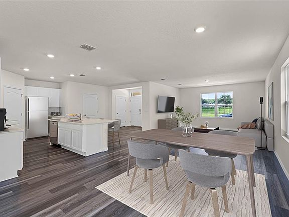 Under Construction. "Welcome to the Campbell, a stunning four-bedroom, two-and-a-half-bathroom home located in Crossroads at Kelly Park. A beautiful patio welcomes you to a home that optimizes living space with an open concept kitchen overlooking the living area, dining room, and outdoor lanai. Entertaining is a breeze, as this popular single-family home features a spacious kitchen island, quartz counter, dining area and a spacious pantry for extra storage. Ample windows and a set of sliding glass doors allow lighting into the dining area and luxury vinyl plank flooring throughout is stylish and charming. The first floor also features a powder bathroom off the living area for convenience. As we head up to the second floor, we are greeted with bedroom one that features an en suite bathroom with a double vanity and a spacious walk-in closet providing substantial space for storage. Bedroom one, located off the living space, has an en suite bathroom with double vanity and spacious walk-in closet providing ample space for storage. Three additional bedrooms and one full bath are located at the front of the home along with a closet and laundry room. Three additional bedrooms, a full bathroom, and a laundry area are also located on the second floor. Like all homes in Windrose, the Campbell includes a Home is Connected smart home technology package which allows you to control your home with your smart device while near or away. *Photos are of similar model but not that of exact house. Pictures, photographs, colors, features, and sizes are for illustration purposes only and will vary from the homes as built. Home and community information including pricing, included features, terms, availability and amenities are subject to change and prior sale at any time without notice or obligation. Please note that no representations or warranties are made regarding school districts or school assignments; you should conduct your own investigation regarding current and future schools and school boundaries.*