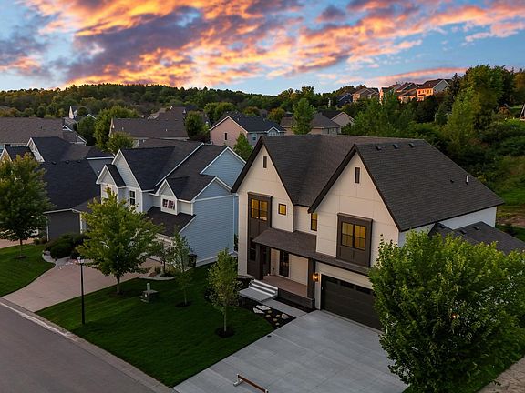 New 2025 construction by McDonald Construction featuring the Aspen Plan in Hampton Hills 7th Addition. This 6-bed, 5-bath home offers 4,259 sq ft on a 0.38-acre lot with modern systems and efficient design. The west-facing front brings evening sun curb appeal while the east-facing rear fills the patio and main living areas with morning light. Open-concept layout includes a gourmet kitchen with center island, quartz surfaces, tile backsplash, and walk-in pantry. Adjacent dining and family room feature a gas fireplace and views to the landscaped back yard. A main-level bedroom with 3/4 bath supports flex use for guests or office space. Upper level includes a primary suite with freestanding tub and separate shower, plus loft and convenient laundry. Finished lower level adds a large recreation area and sixth bedroom.