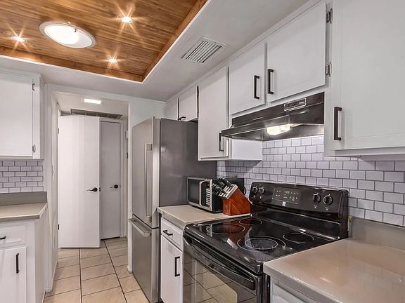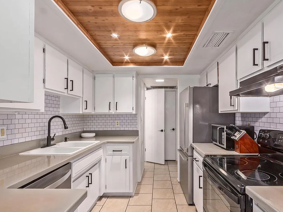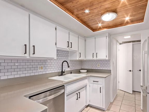 Covered patioJuliet balconyLow-maintenance artificial turfPrivate bathroomSubway tile backsplashWhite flat-panel cabinetsBuilt-in appliances