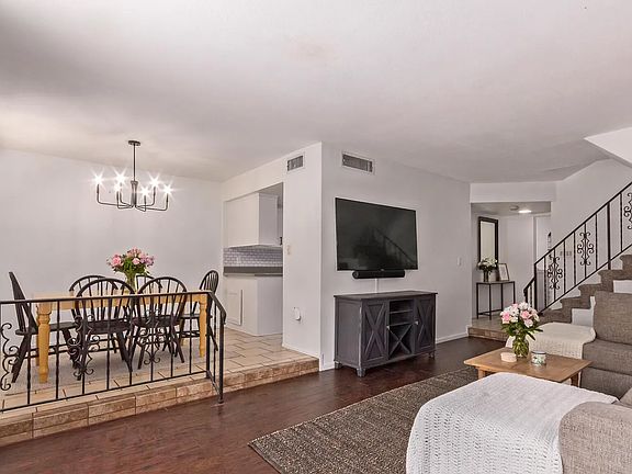 Section 8 accepted Discover this charming 3-bedroom, 2.5-bath townhome, now available on the market! The living room features a soothing palette, wood-look flooring, and French doors leading to the patio. The kitchen boasts white flat-panel cabinets, a subway tile backsplash, essential built-in appliances, and a peninsula with a breakfast bar. The main bedroom includes a walk-in closet, a Juliet balcony for a breath of fresh air, and a private bathroom. Outside, enjoy low-maintenance artificial turf and a covered patio for evening relaxation. Additionally, take advantage of the community pool, perfect for cooling off on warm days. Conveniently located near bus stops, schools, restaurants, and shopping options. Don't miss out on this one!