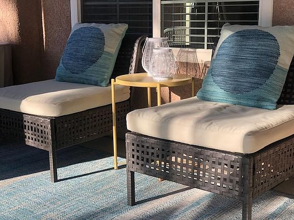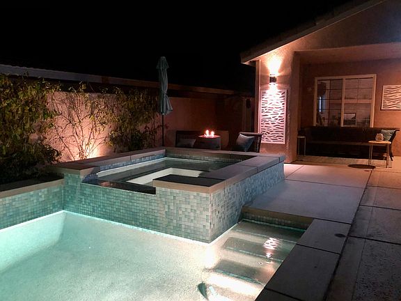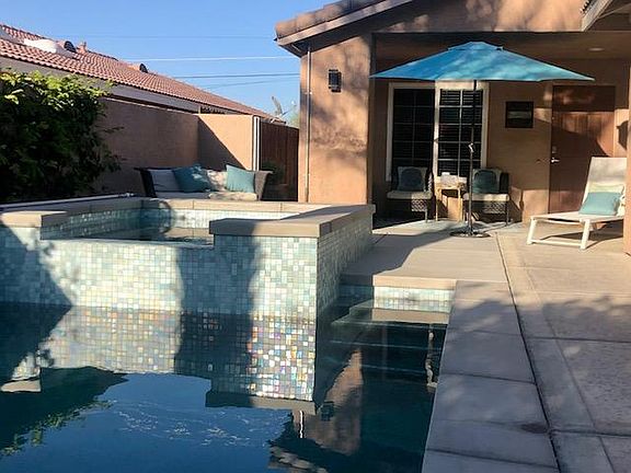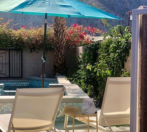 VACATION RENTAL: Come enjoy the serenity and warmth of the desert! Seasonal rates apply (see below). Home already rented Jan 15-April 10, 2026. Fully furnished desert boho vacation home (minimum 31 day) with saltwater pool / spa and spectacular views of the Santa Rosa Mountains. This 3 bed / 2 bath has a bright, airy, and open-concept interior with high vaulted ceilings, sky lights, ceiling fans, and calm neutral colors. Nestled in La Quinta Cove, just blocks from beautiful Bear Creek hiking and bike trails. Perfect for extended getaways, snowbirds, or those looking for a relaxing place to work remotely. Within 5 min drive from of La Quinta resort and spa, world class golf and tennis, the pickleball courts at Fritz Burns Park, and the restaurants and shops of Old Town La Quinta. The Festival Grounds, Polo Fields and Indian Wells Tennis Garden are just minutes away. Updated and fully equipped kitchen, includes new quartz countertops, stainless-steel appliances, Keurig combo coffee maker, and breakfast bar. Cabinets stocked dining ware, flatware, glasses, small appliances, pots & pans etc. Grab a cocktail and enjoy the sunset over the Santa Rosa mountains. The living room is an open concept with vaulted ceiling and plenty of seating. A comfortable sofa, side chairs, gas fireplace, and large smart TV make the space a great spot for relaxing. A sliding door leads out to the side patio and pool area. Our home has books, board games, puzzles, and pool toys for you to enjoy. Master Suite has king-size bed and vaulted ceilings. The suite includes a smart TV and desk/working/yoga area that lead to a small back patio. The master bath has double sinks, oversized shower/tub and large walk-in closet. Second bedroom includes a queen bed with smart TV and reading chair. The third guest room has two twin beds to flexibly accommodate different groups. Second bath has quartz countertops and tub/shower combo. Bed linens, bath, and pool towels provided. An indoor laundry with washer and dryer is also available for guest use. New private saltwater pool and spa with lounge chairs, umbrellas, fire column, gas grill, and 4-person dining table. Sip your morning coffee to the sounds of birds and mourning doves or enjoy a glass of wine as you watch the sun set over the mountains. The home is completely enclosed with a gated driveway and attached garage. Minimum 31-day stay. All utilities, (water, gas, trash, cable, internet, and electric service) are included in rent for stays 69 days or less with a $300 electrical cap/month. Ample parking in the 2-car garage and gated driveway. Cleaning fee of $250. Housekeeping is available during your stay for an extra fee. Monthly rates are seasonal as follows: Jan - April ($6,000/month); May ($5,000); Jun-Sept ($4,000/month); October - Dec ($5,000/month). Small dogs allowed with approval (extra deposit required). No smoking. Security deposit: $2,500. No smoking, No sublets. $29 Zillow application fee paid by tenant. Monthly housekeeping required for longer stays.