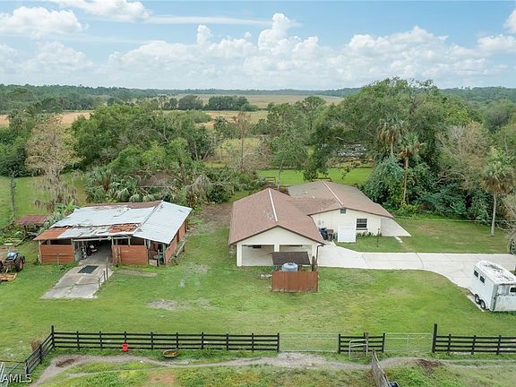Welcome to your dream home on a private road in the sought-after Buckingham Community. This beautiful ranch sits on 4+ acres of land, complete with 4 cross-fenced pastures and a 4-stall barn with a tack room and additional storage area. It offers the best of both worlds, perfect for horse enthusiasts or those seeking peace and privacy while still being just 15 minutes away from downtown Fort Myers, grocery stores, shopping, and restaurants. Inside, you'll find a high-end kitchen with all wood cabinetry, granite countertops, stainless steel appliances, and a breakfast nook. The upgraded bathrooms and the additional large family room and bath added in 2014 provide extra space. The home also features a spa-like shower with five water heads, a reverse osmosis system and pre-wired 220 line for a hot tub. Additionally there's a 24 x 24 concrete building, currently set up as a 4-dog kennel, that could easily be converted into a workshop or extra storage. The 11 x 17 foot den could be converted to a third bedroom and the 24 x 30 foot family room offers endless possibilities. Schedule a showing today and don't miss your chance to own this piece of paradise.