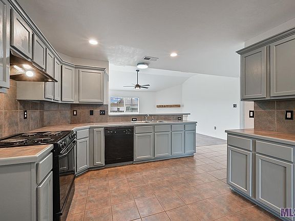 - Features: Cabinets Factory Built, Tile Counters, Pantry